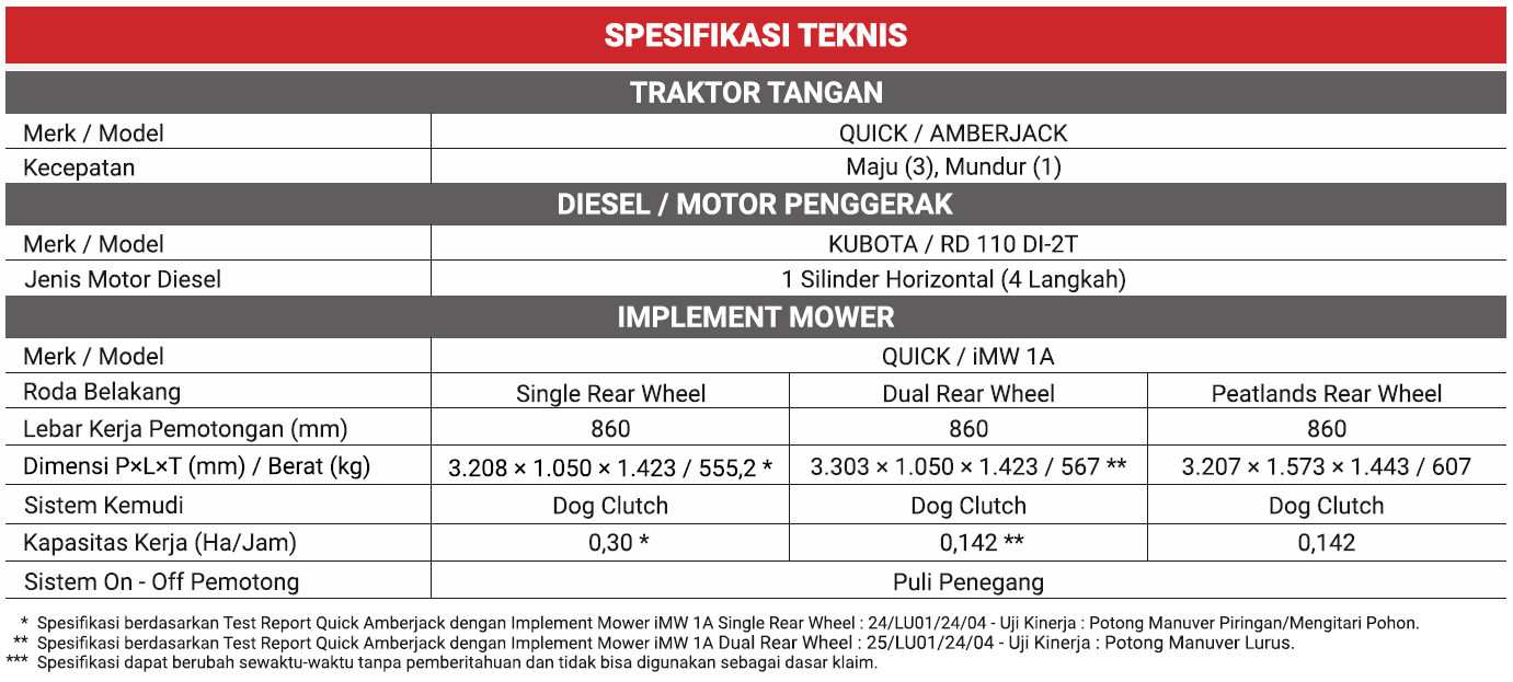 Jika Pak Bos sudah memiliki Unit Amberjack, pak bos bisa membeli implement Mower iMW 1A nya saja dengan menghubungi 0811-2930-300 atau kunjungi tokoquick.id.